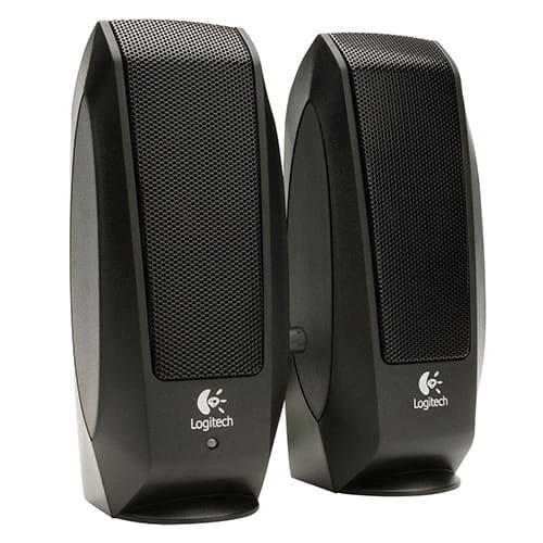 Zestaw głośników Logitech S120 2.0 o eleganckim, nowoczesnym wyglądzie gwarantujący wysokiej jakości dźwięk.