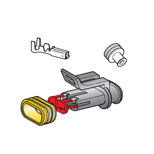 Zestaw: obudowa 2-u drożna + 2 x konektor F150 (żeński) + osłonki (30.50126) MTA