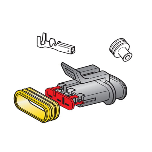 Zestaw: obudowa 3 drożna + 3 x konektor F150 (żeński) + osłonki (30.50128) MTA