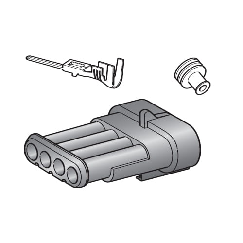 Zestaw: obudowa 4-o drożna + 4 x konektor M150 (męski) + osłonki (30.50129) MTA