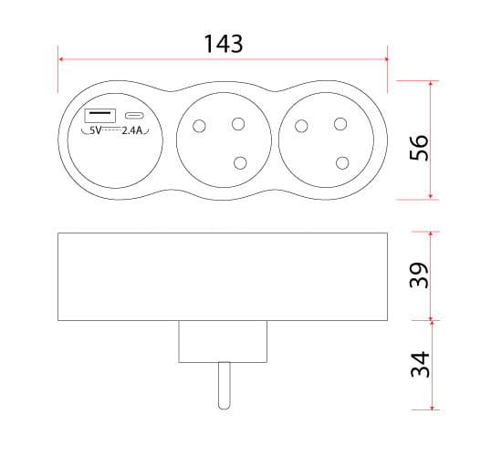 - Gniazdo [ilość]:230V: 2szt. | USB: 2szt.