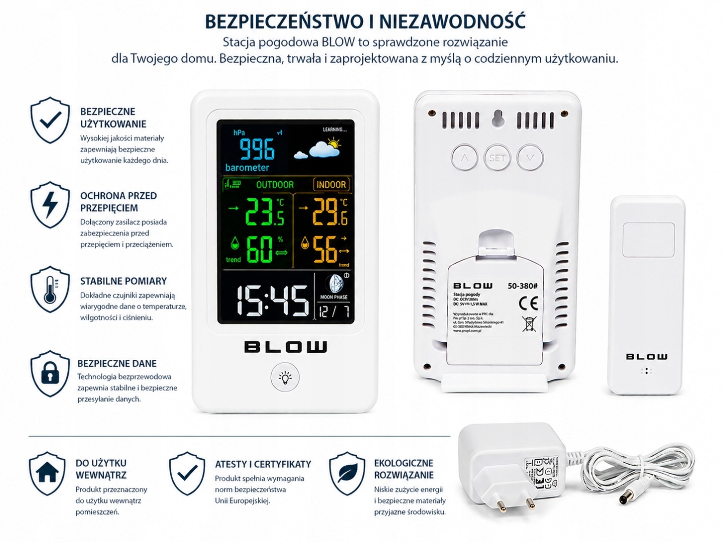 To idealne rozwiązanie do domu, biura lub mieszkania. Stacja pozwala na bieżąco kontrolować pogodę i warunki w pomieszczeniu, pomagając zadbać o komfort i zdrowie domowników.